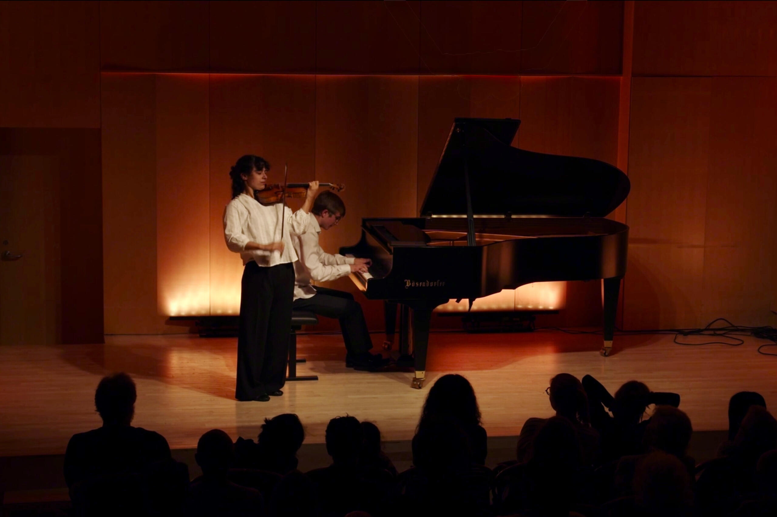 Fondé en 2023 au Conservatoire de musique de Montréal, le Duo Alio réunit la violoniste Amellie Gendron et le pianiste Samuel Lauzon-Schnittka. Son nom, issu du latin alio (« vers un autre lieu »), reflète la quête d’un ailleurs — à la fois musical, poétique et humain — qui guide la démarche du duo. Par leur jeu, Amellie et Samuel cherchent à tisser des liens entre les œuvres, les époques et les auditeurs, animés par une conviction profonde : la musique peut susciter un élan commun, un mouvement partagé aux destinations plurielles.Le duo Alio fut lauréat du troisième prix du Festival-concours de musique de Sherbrooke 2025 ainsi que de la Bourse Initiative et créativité de la Fondation des Conservatoires de musique du Québec. Grâce à cette bourse, ils ont présenté un concert dédié aux compositrices de la Belle Époque, rendant hommage à sept figures injustement méconnues.En formation au Conservatoire auprès de Sandra Murray et Jean-Sébastien Roy, Amellie et Samuel développent un langage commun vivant et sensible. Leur complicité musicale s’est également affirmée lors de leurs participations au Stage de sonates du Saguenay–Lac-Saint-Jean (2024) et au Young Artist Program du Scotia Festival (2025).Pour Amellie et Samuel, la musique de chambre est avant tout un espace de dialogue et de transformation — un lieu où l’écoute devient mouvement et où l’interprétation conduit « vers un autre lieu ».
