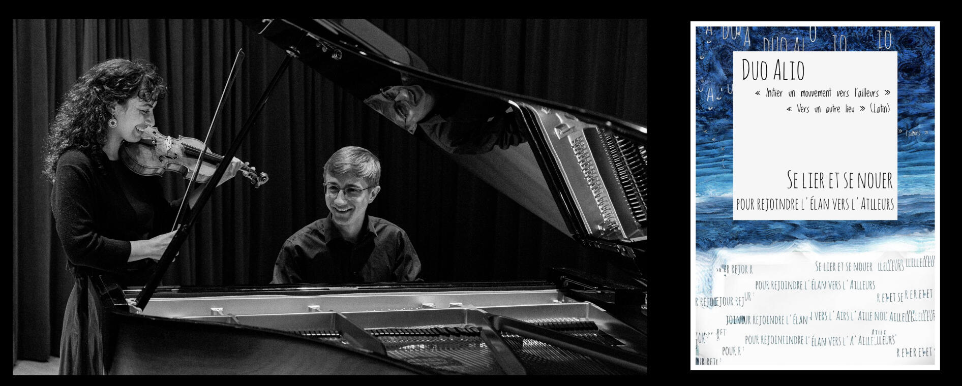 Fondé en 2023 au Conservatoire de musique de Montréal, le Duo Alio réunit la violoniste Amellie Gendron et le pianiste Samuel Lauzon-Schnittka. Son nom, issu du latin alio (« vers un autre lieu »), reflète la quête d’un ailleurs — à la fois musical, poétique et humain — qui guide la démarche du duo. Par leur jeu, Amellie et Samuel cherchent à tisser des liens entre les œuvres, les époques et les auditeurs, animés par une conviction profonde : la musique peut susciter un élan commun, un mouvement partagé aux destinations plurielles.Le duo Alio fut lauréat du troisième prix du Festival-concours de musique de Sherbrooke 2025 ainsi que de la Bourse Initiative et créativité de la Fondation des Conservatoires de musique du Québec. Grâce à cette bourse, ils ont présenté un concert dédié aux compositrices de la Belle Époque, rendant hommage à sept figures injustement méconnues.En formation au Conservatoire auprès de Sandra Murray et Jean-Sébastien Roy, Amellie et Samuel développent un langage commun vivant et sensible. Leur complicité musicale s’est également affirmée lors de leurs participations au Stage de sonates du Saguenay–Lac-Saint-Jean (2024) et au Young Artist Program du Scotia Festival (2025).Pour Amellie et Samuel, la musique de chambre est avant tout un espace de dialogue et de transformation — un lieu où l’écoute devient mouvement et où l’interprétation conduit « vers un autre lieu ».